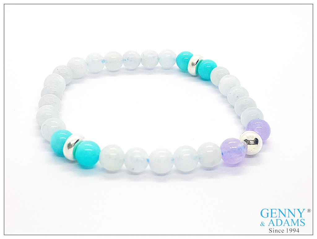 6mm月光石+6mm薰衣草紫晶+6mm天河石+925銀珠