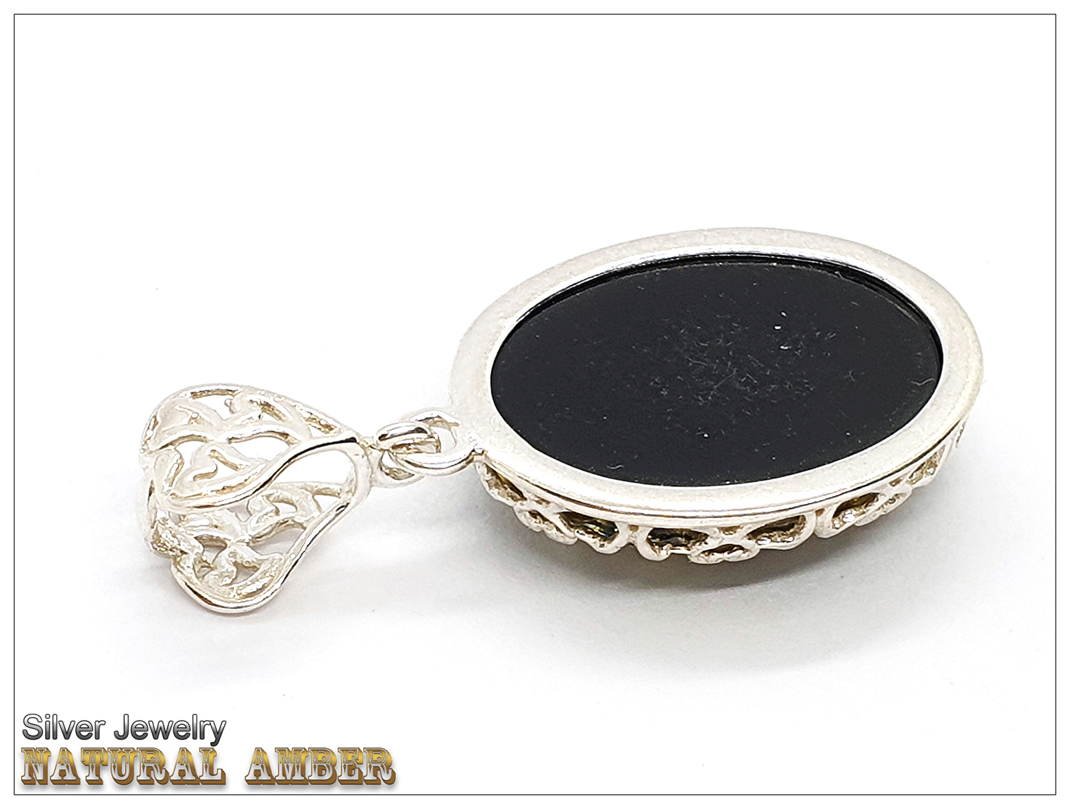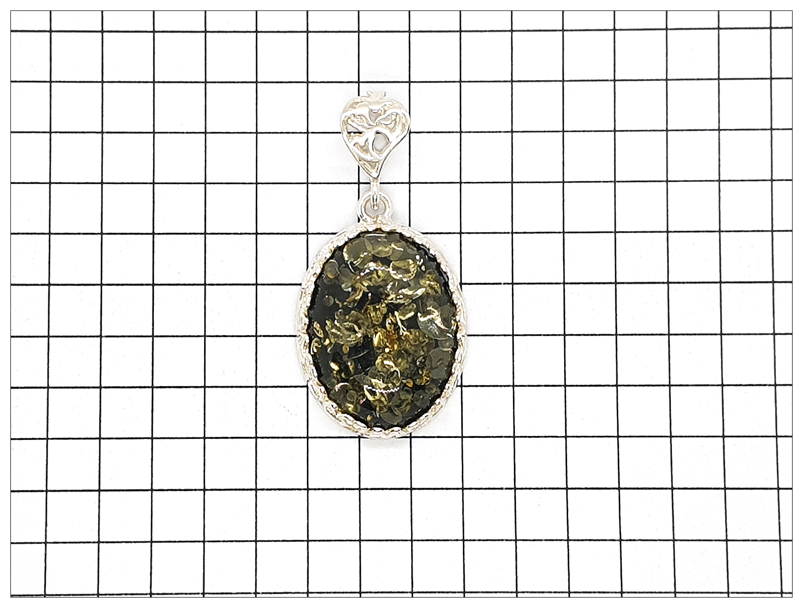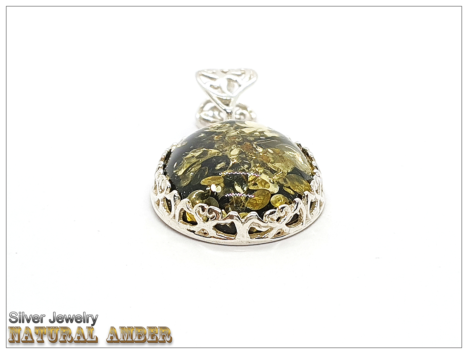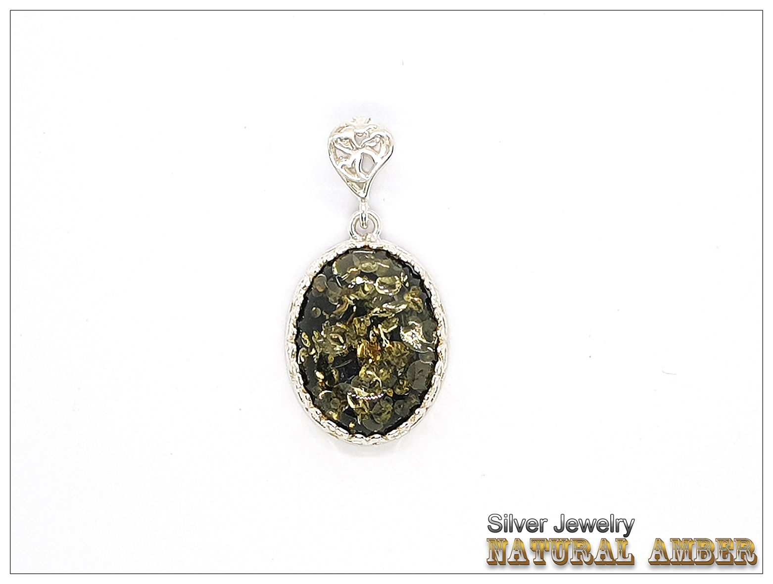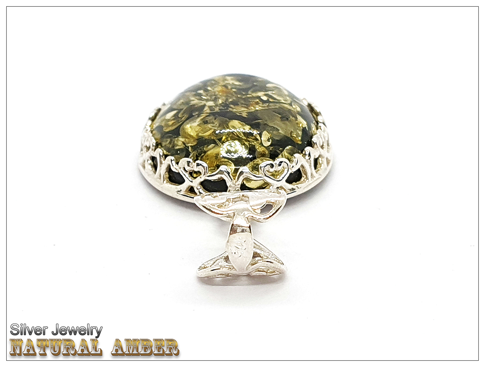 天然琥珀(綠珀)+銀鑲框與釦