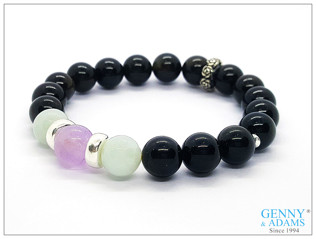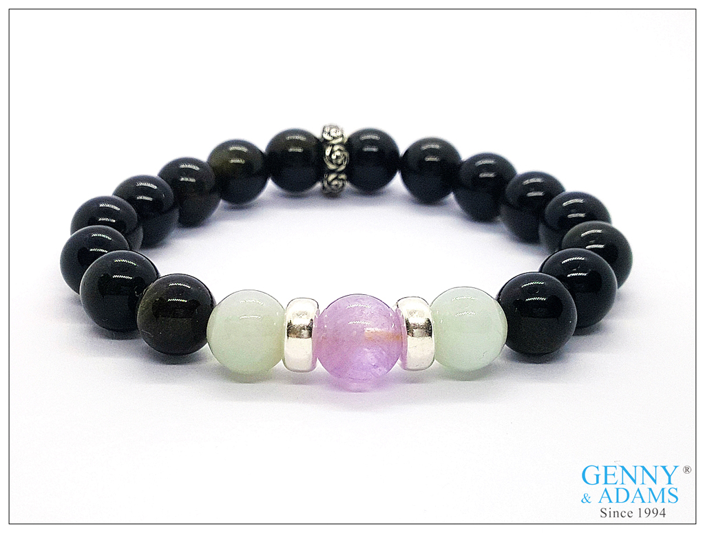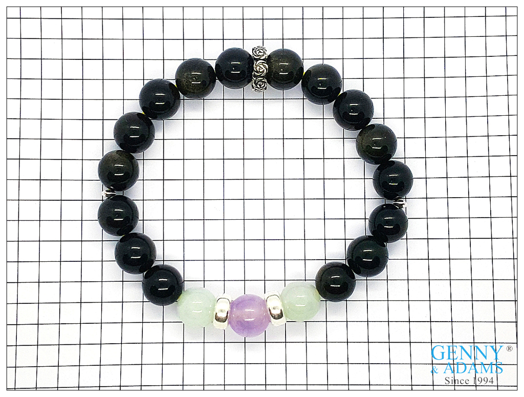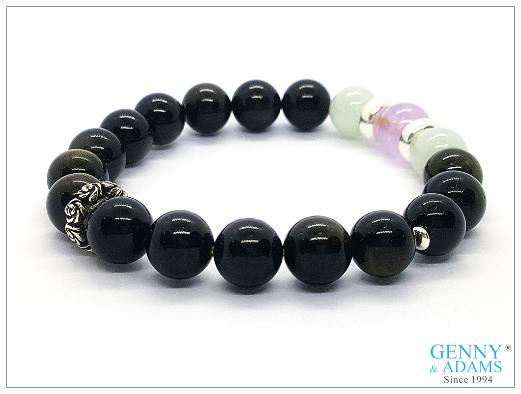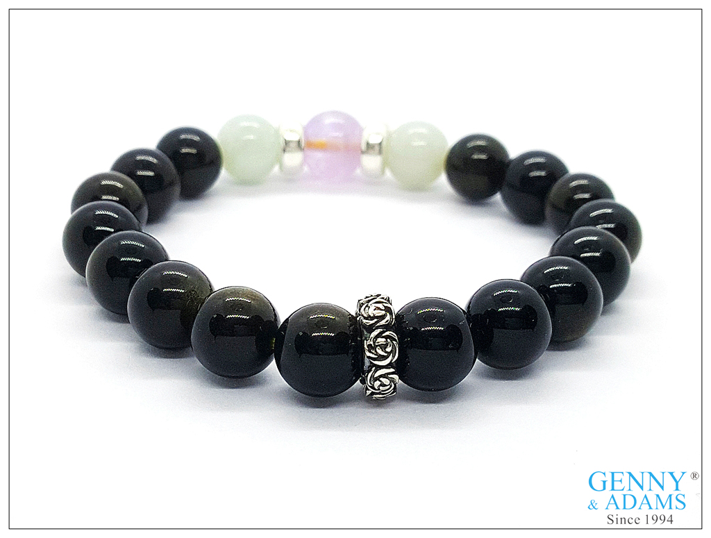 10mm天然寶石珠搭配925銀珠與手工玫瑰銀圈配件。
